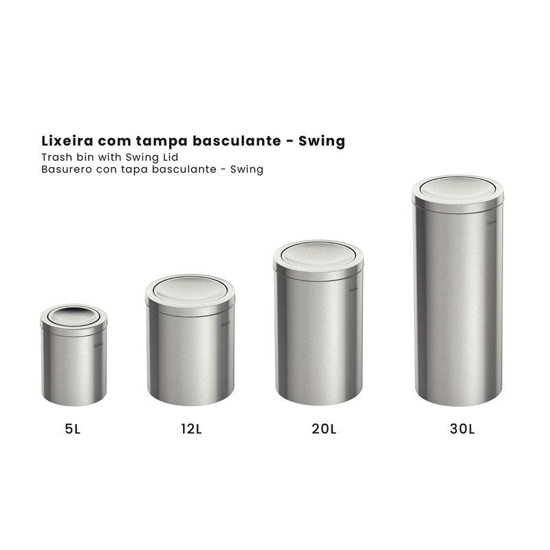 Proporcione bienestar y practicidad a su día a día con el basurero de acero inoxidable Tramontina Swing con terminación Satinado, tapa de vaivén y 30 l de capacidad. Se fabrica en acero inoxidabl... Ver más detalles